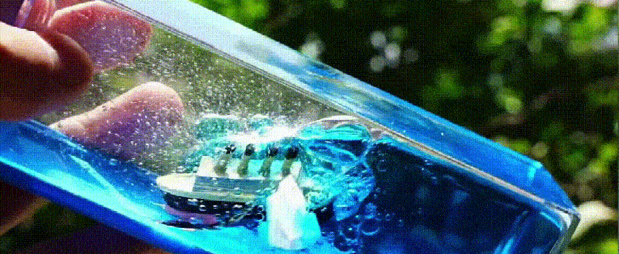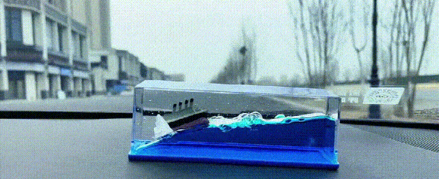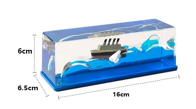 Išorinis sluoksnis pagamintas iš aukštos kokybės akrilo medžiagos, skaidrus, panašus į kristalą, švelni šviesa ir aiškus matymas. Ir kruizinis laivas, ir ledkalnis yra pagaminti iš dervos, o įmontuotas jūros vanduo yra grynas vanduo ir augalinis aliejus, kuris niekada nenuskęs.